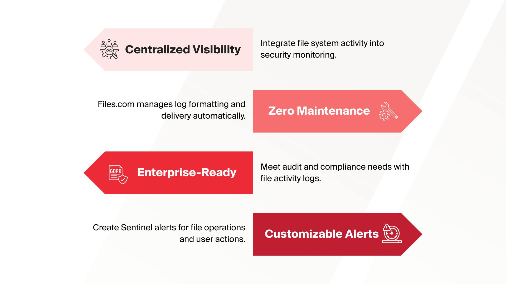 Let your SOC team see the full picture. Files.com makes it easy to connect, stream, and act on file transfer data in real time.