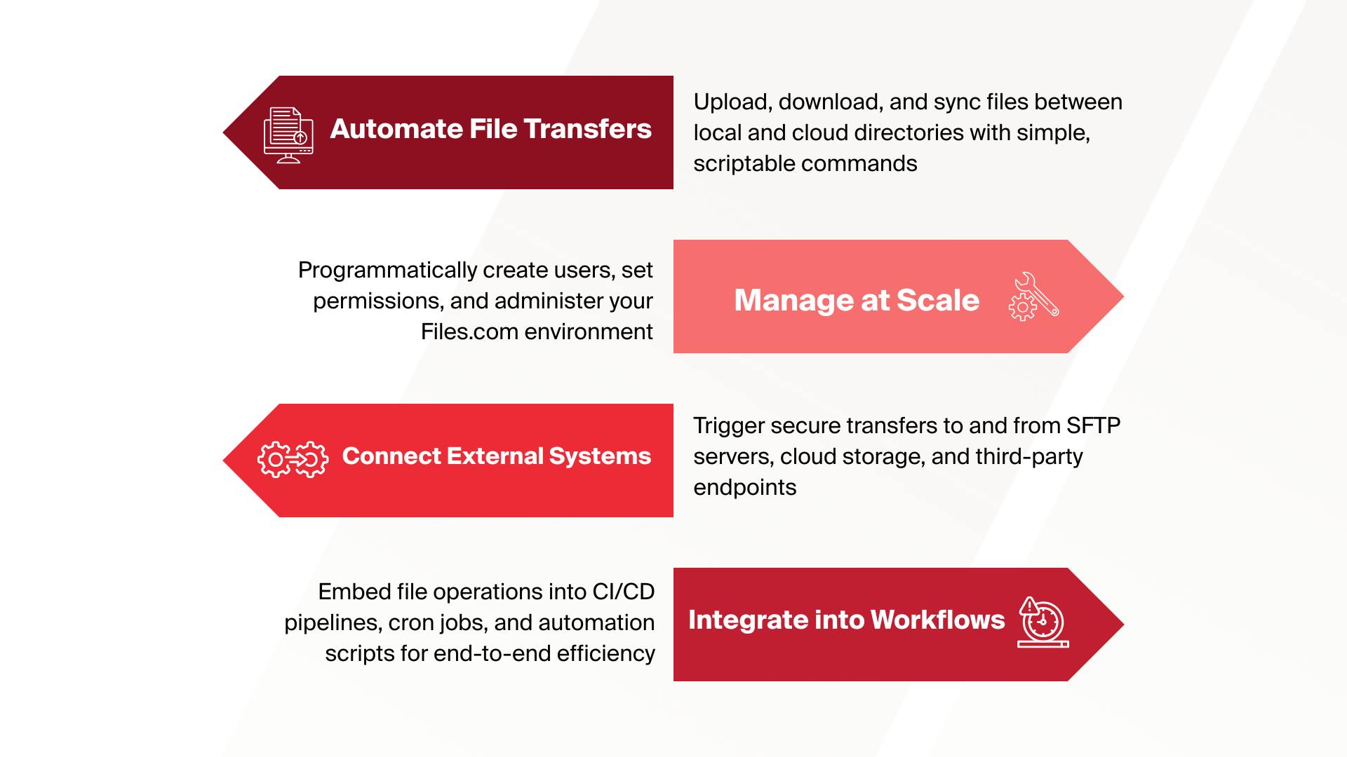 - Manage at Scale: Programmatically create users, set permissions, and administer your Files.com environment.