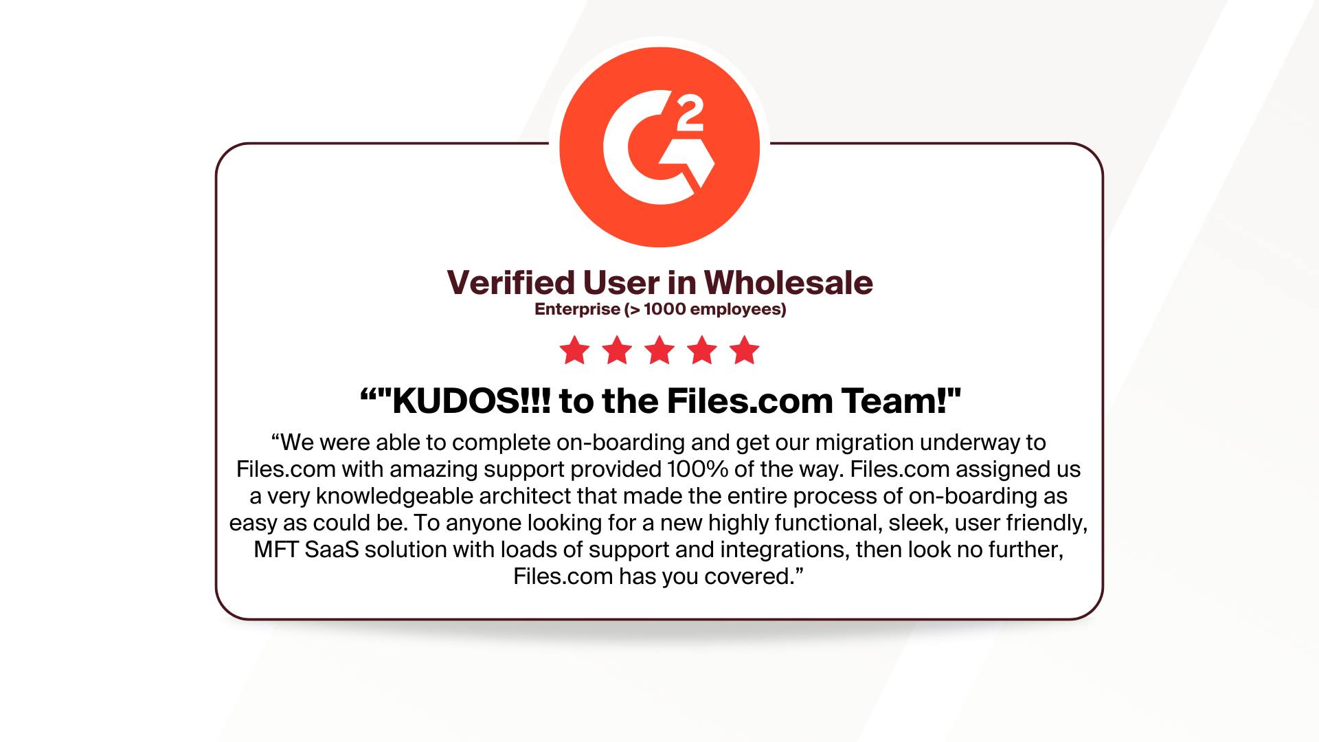 We’re honored by the trust placed in us by enterprise IT teams and partners. Your feedback drives our roadmap and ensures that Files.com continues to deliver the features and support you need to manage secure, scalable file transfers.