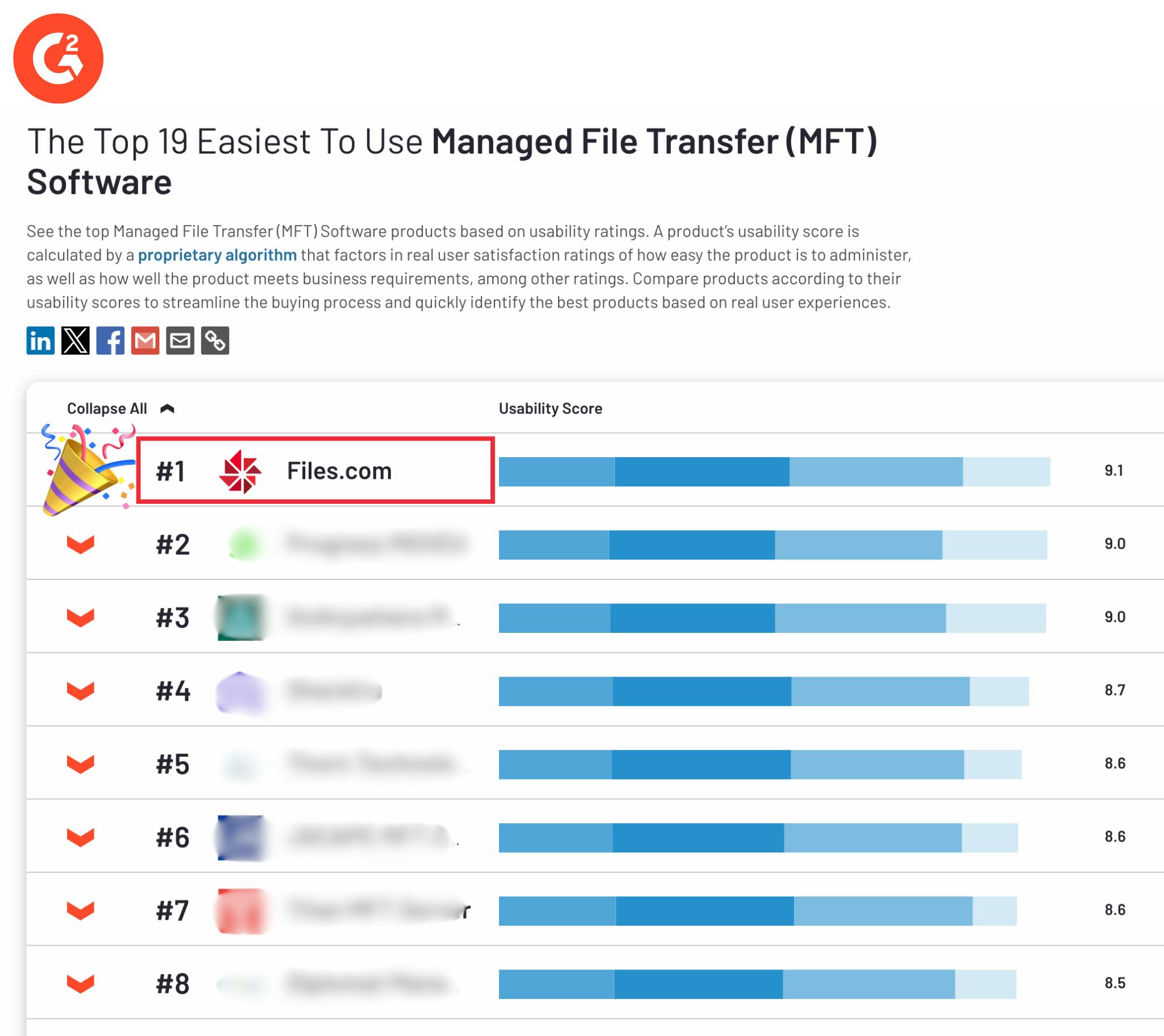 Being named G2’s #1 easiest-to-use MFT platform is more than just an honor; it’s a validation of our mission to make managed file transfers simple, scalable, and stress-free for everyone.