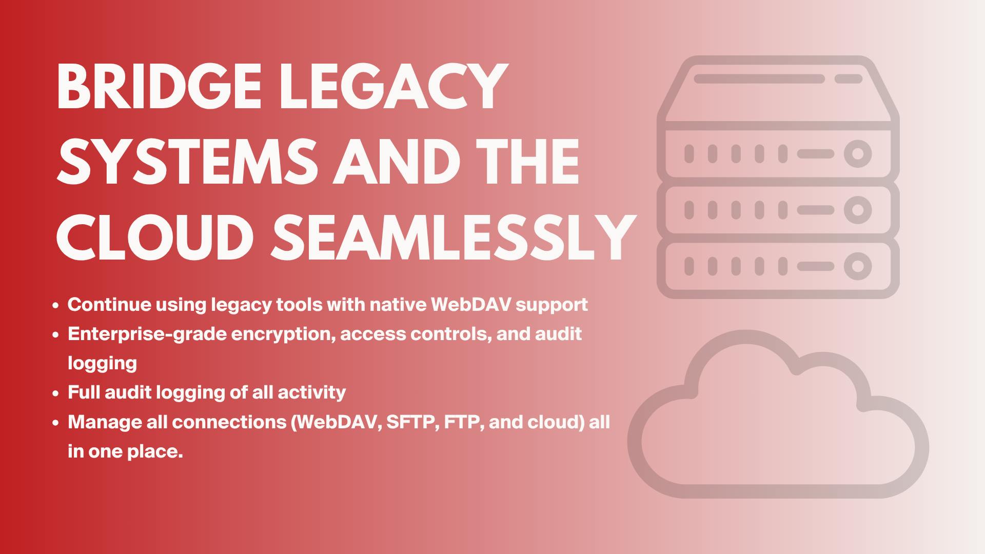 Still relying on older systems that use WebDAV? Files.com supports full WebDAV integration, so you can continue using those tools while gaining the security, scalability, and automation of a modern file platform.