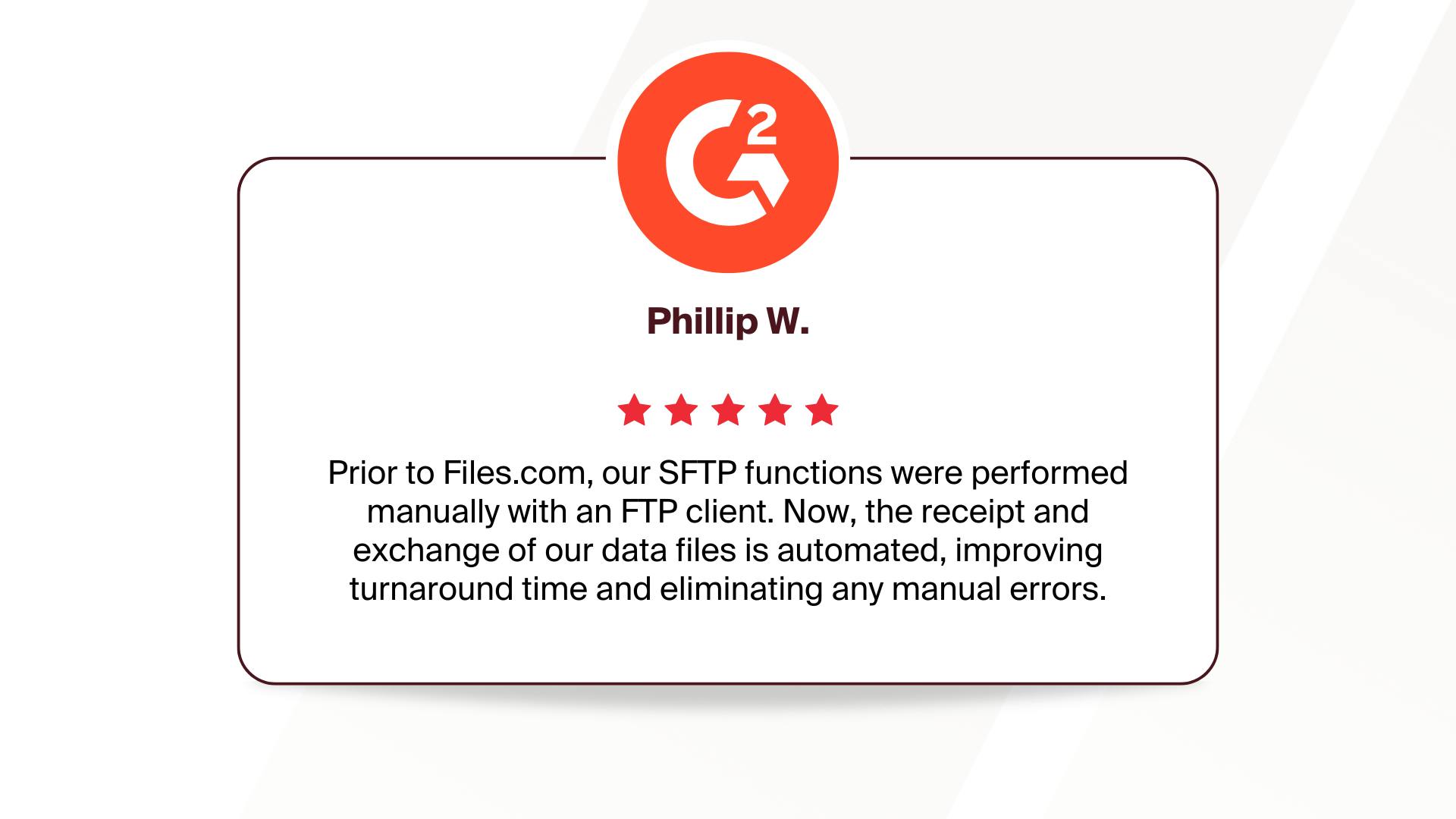 With Files.com, you get more than just an SFTP connection - you get a platform that adapts to the way your business works. Whether you need to connect internal systems, external partners, or legacy infrastructure, Files.com makes it simple to bring everything together securely.