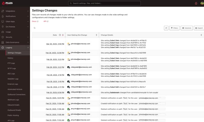 Files carry sensitive data—payroll, health records, financial transactions. Fragmented systems make it difficult to prove compliance and ensure security. Files.com simplifies risk management by: